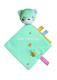 This is a cuddly comforter with a soft book that a baby can cherish from day 1. Soft fabrics help newborns take the best naps. The gentle colour palette, embroidery and soft ribbons will also help to encourage a baby’s sensory development.