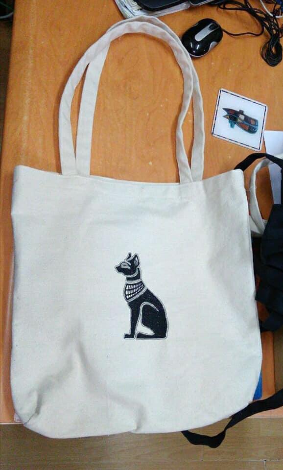 Canvas bags made of natural materials embroidered with Pharaonic drawings, designed and implemented by Adam bookshop