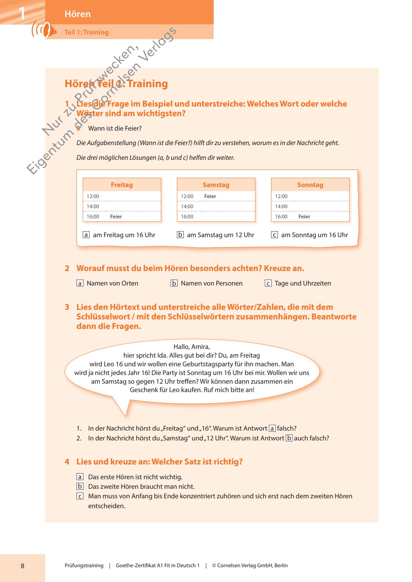 - Im ersten Teil des Prüfungstrainings stellen wir anhand des Modelltests 1 die vier Prüfungsteile Hören, Lesen, Schreiben und Sprechen vor. Zu jedem Teil gibt es Tipps für die Prüfung und eine empfohlene Strategie.