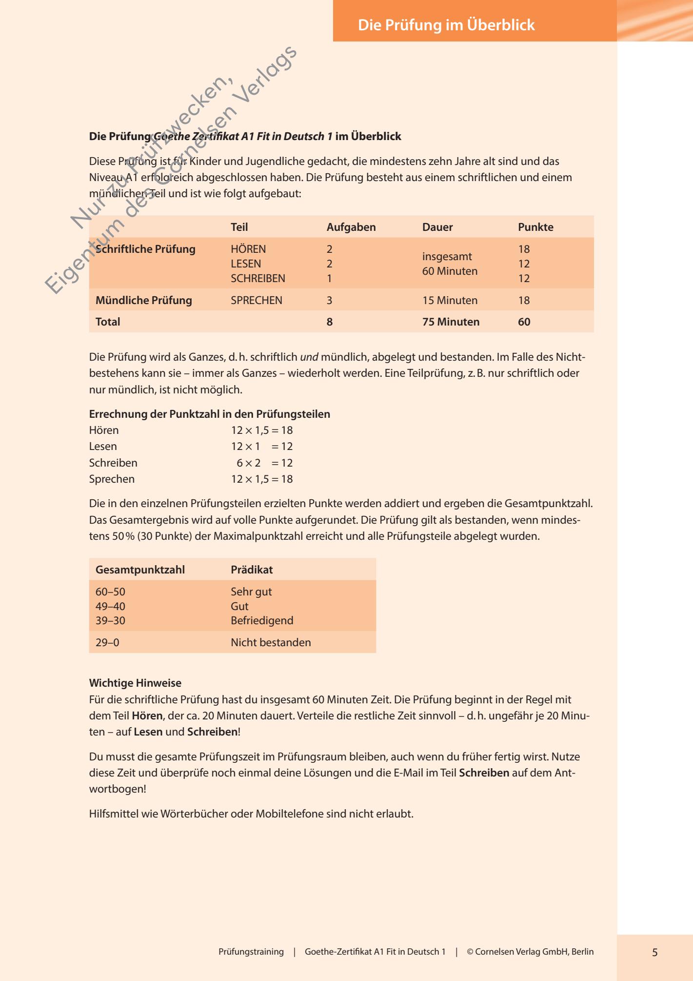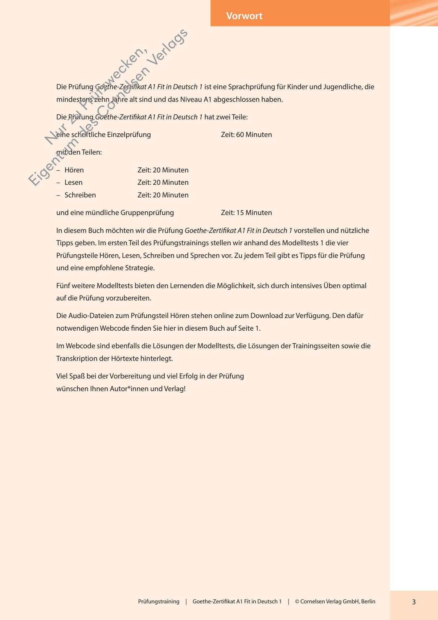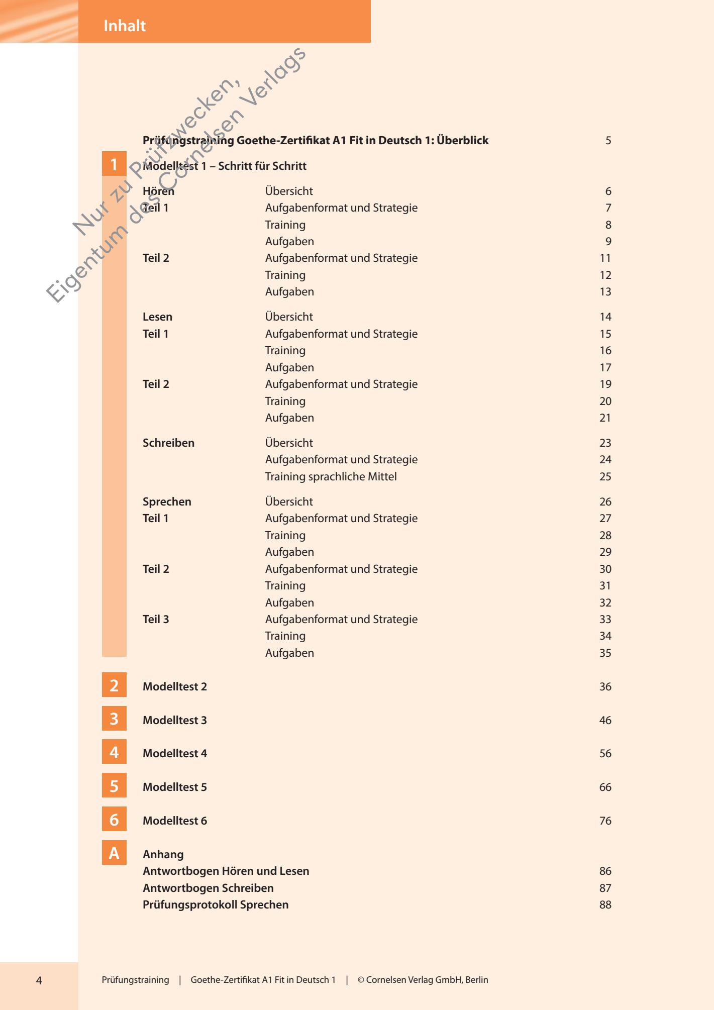 - Fünf weitere Modelltests bieten den Lernenden die Möglichkeit, sich durch intensives Üben optimal auf die Prüfung vorzubereiten. Die Modelltests spiegeln die Themenfelder aus der Alltagswelt der Kinder und Jugendlichen, die für die Prüfung verbindlich sind.