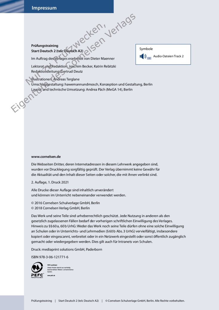 Die Audiodateien, Lösungen, Transkripte der Hörtexte sowie die für die Prüfung relevanten Wortfelder sind bequem als Download auf cornelsen.de/codes verfügbar.