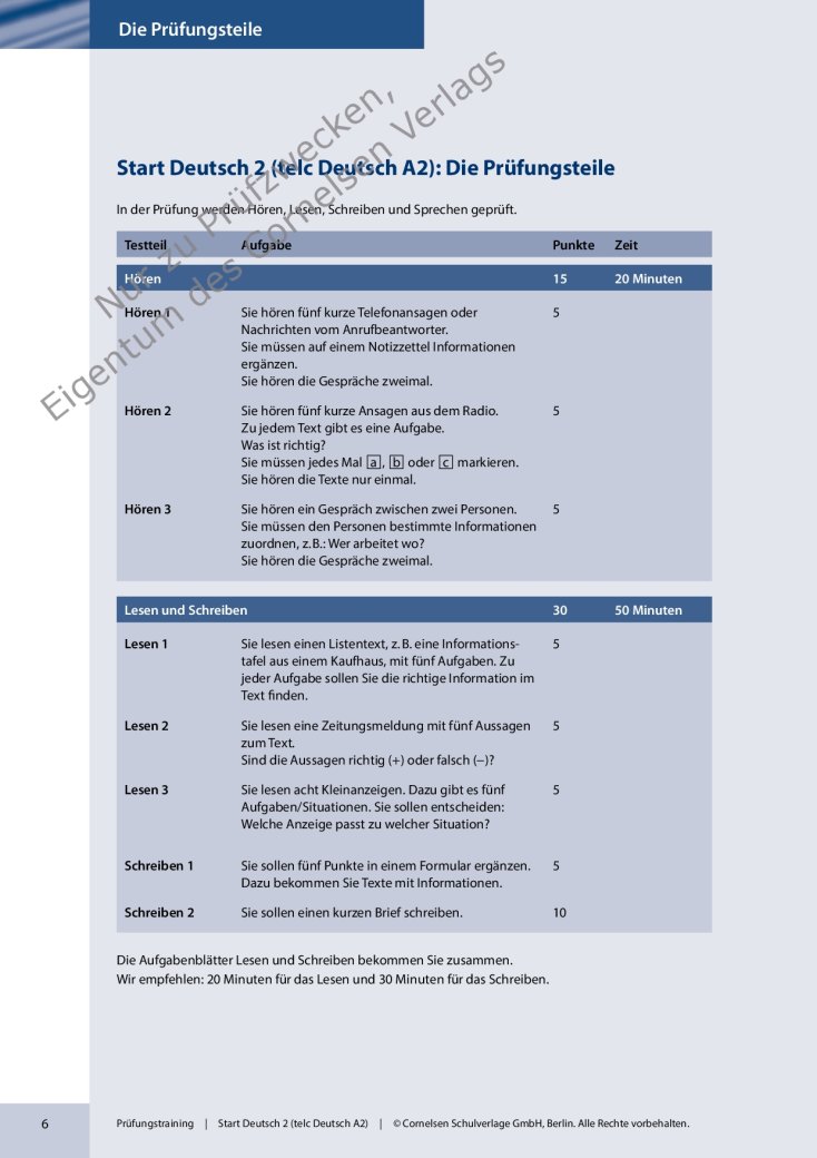 - Hinweise, Tipps und Strategien führen am Beispiel eines ersten Modelltests in kleinen Schritten an die Deutsch als Fremdsprache-Prüfung heran.